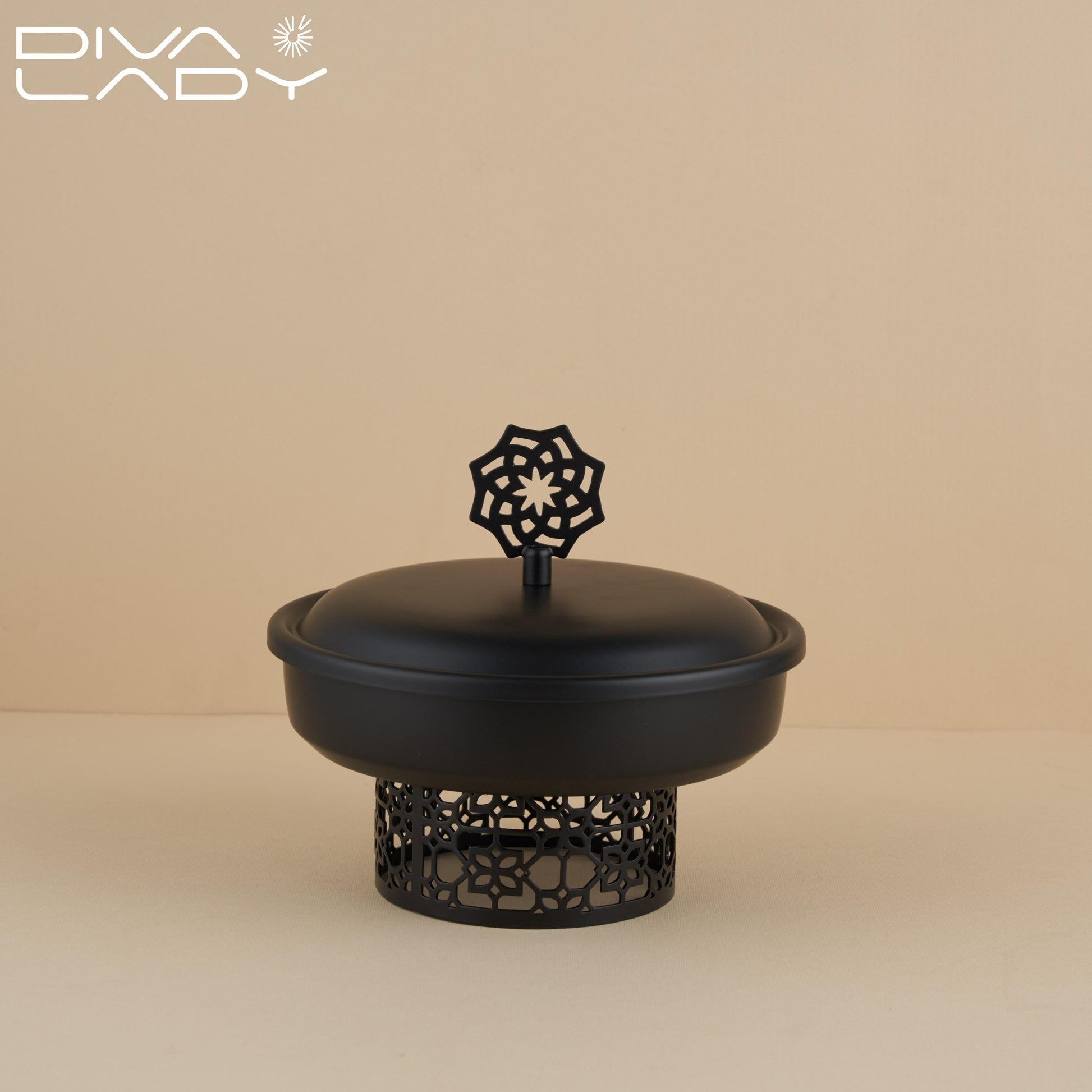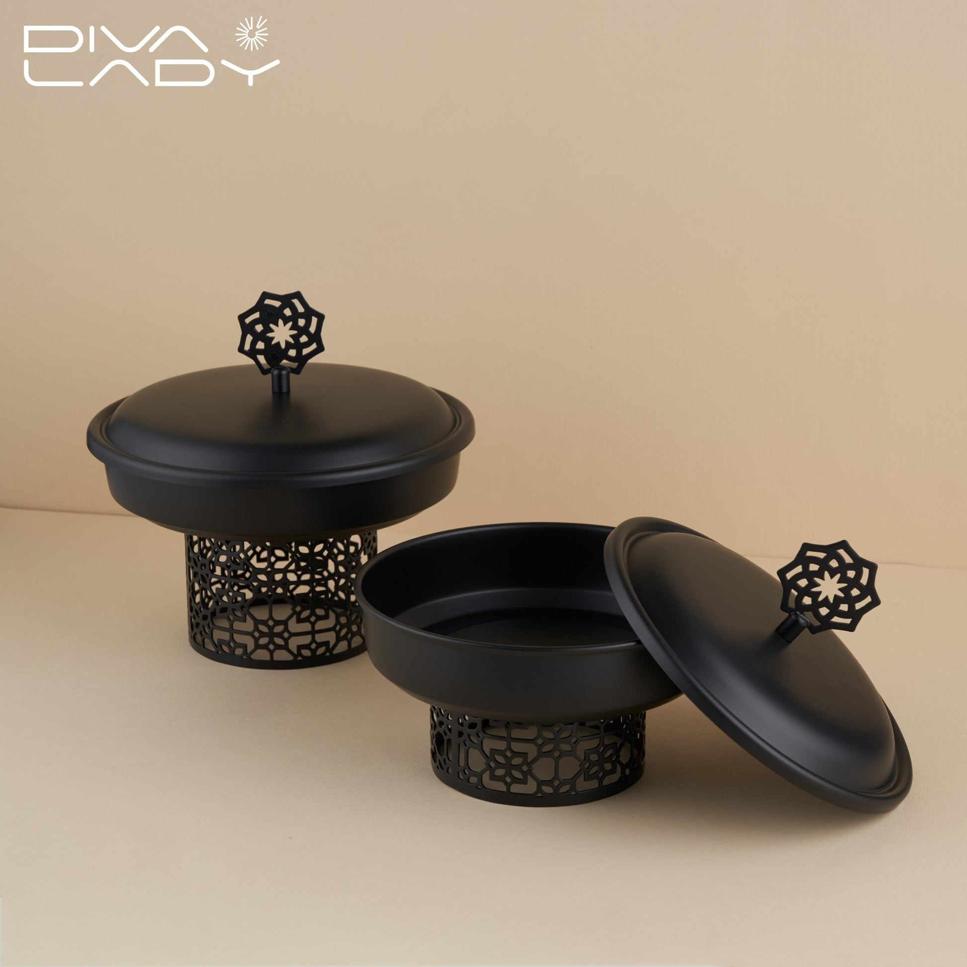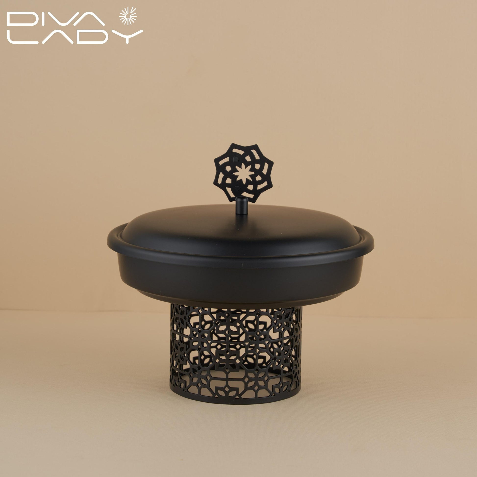 هو قطعة أنيقة وعصرية تستخدم لتقديم التمر للضيوف يتميز بتصميمه الفريد والمزخرف بنقوش هندسية مما يضفي لمسة من الرقي على مائدتك