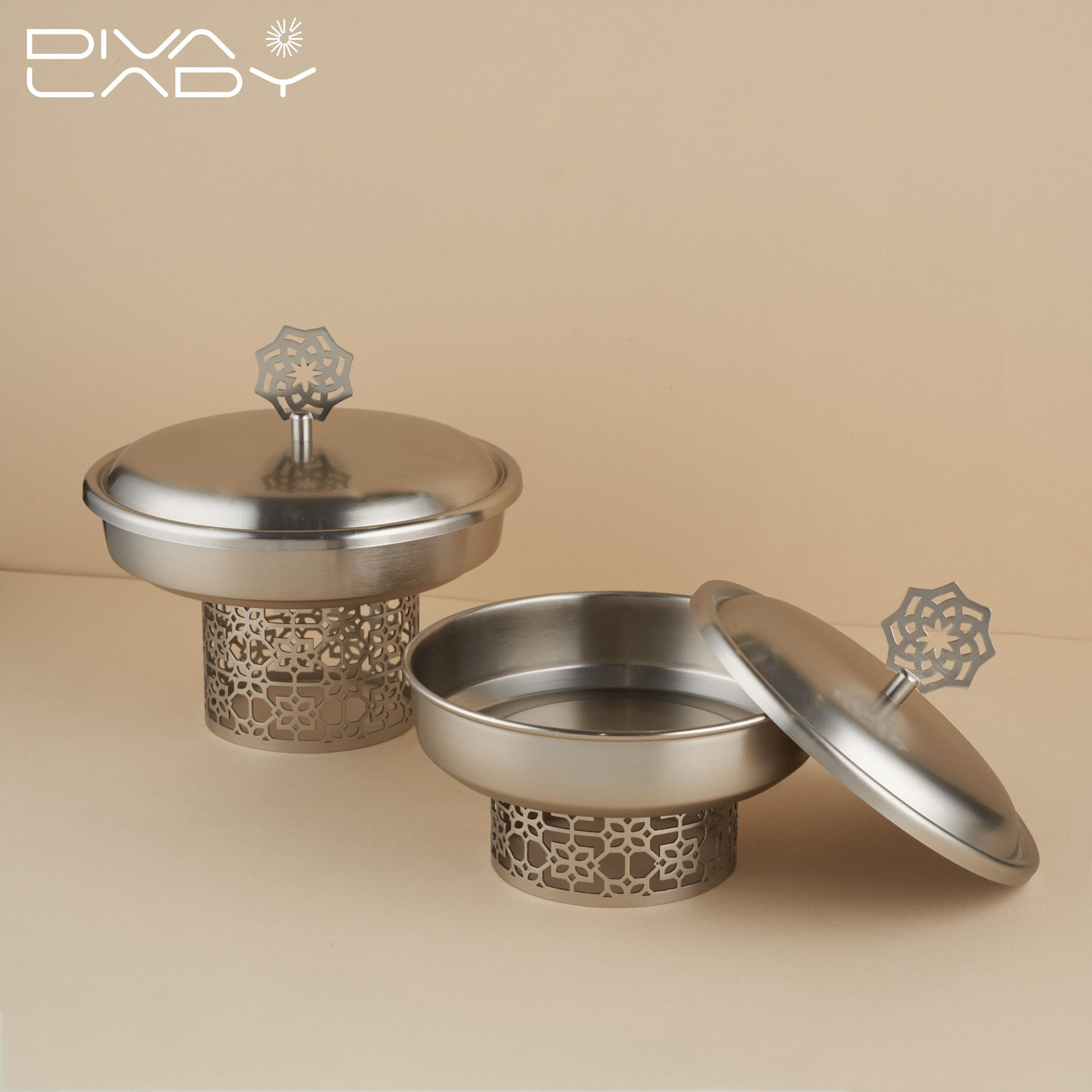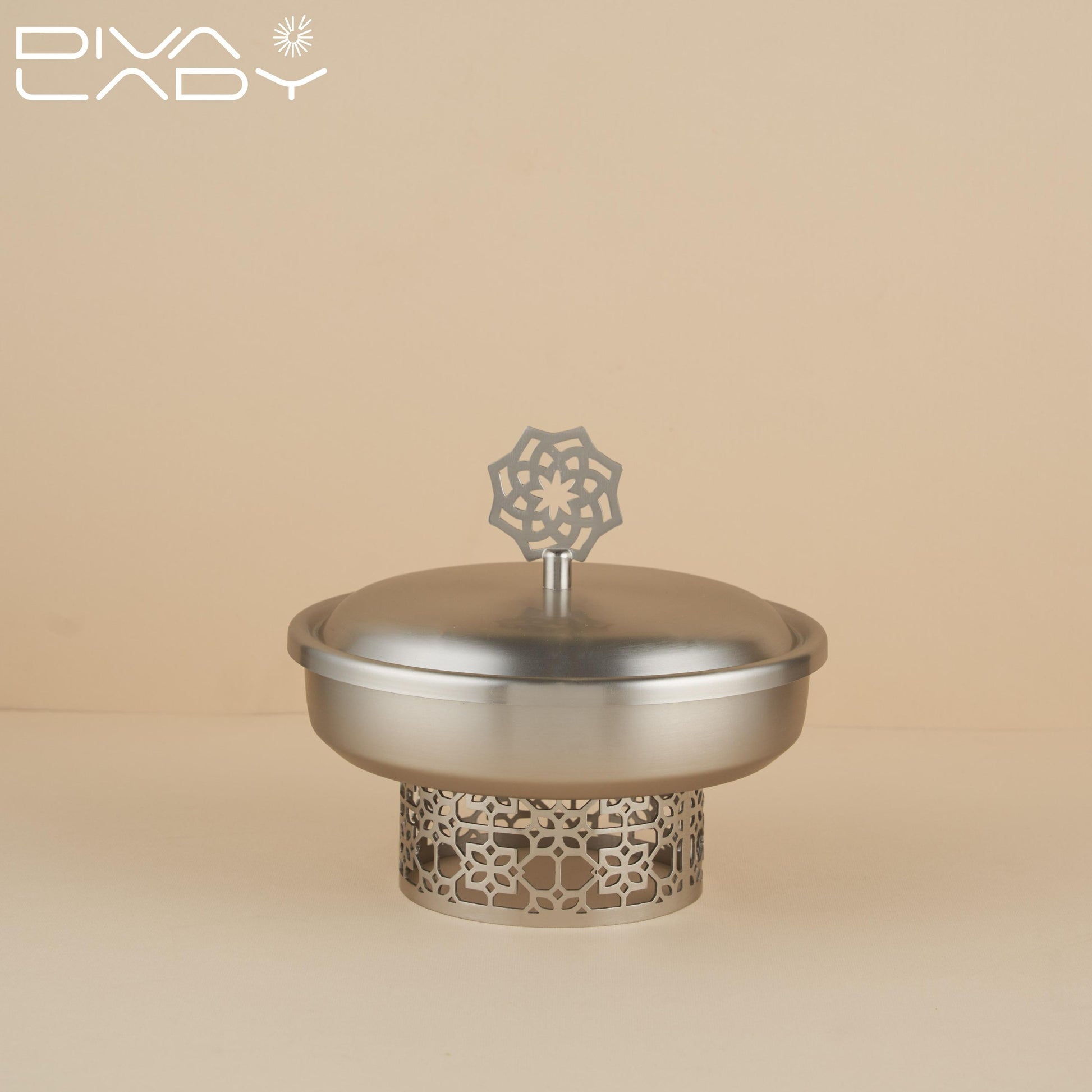 هو قطعة أنيقة وعصرية تستخدم لتقديم التمر للضيوف يتميز بتصميمه الفريد والمزخرف بنقوش هندسية مما يضفي لمسة من الرقي على مائدتك