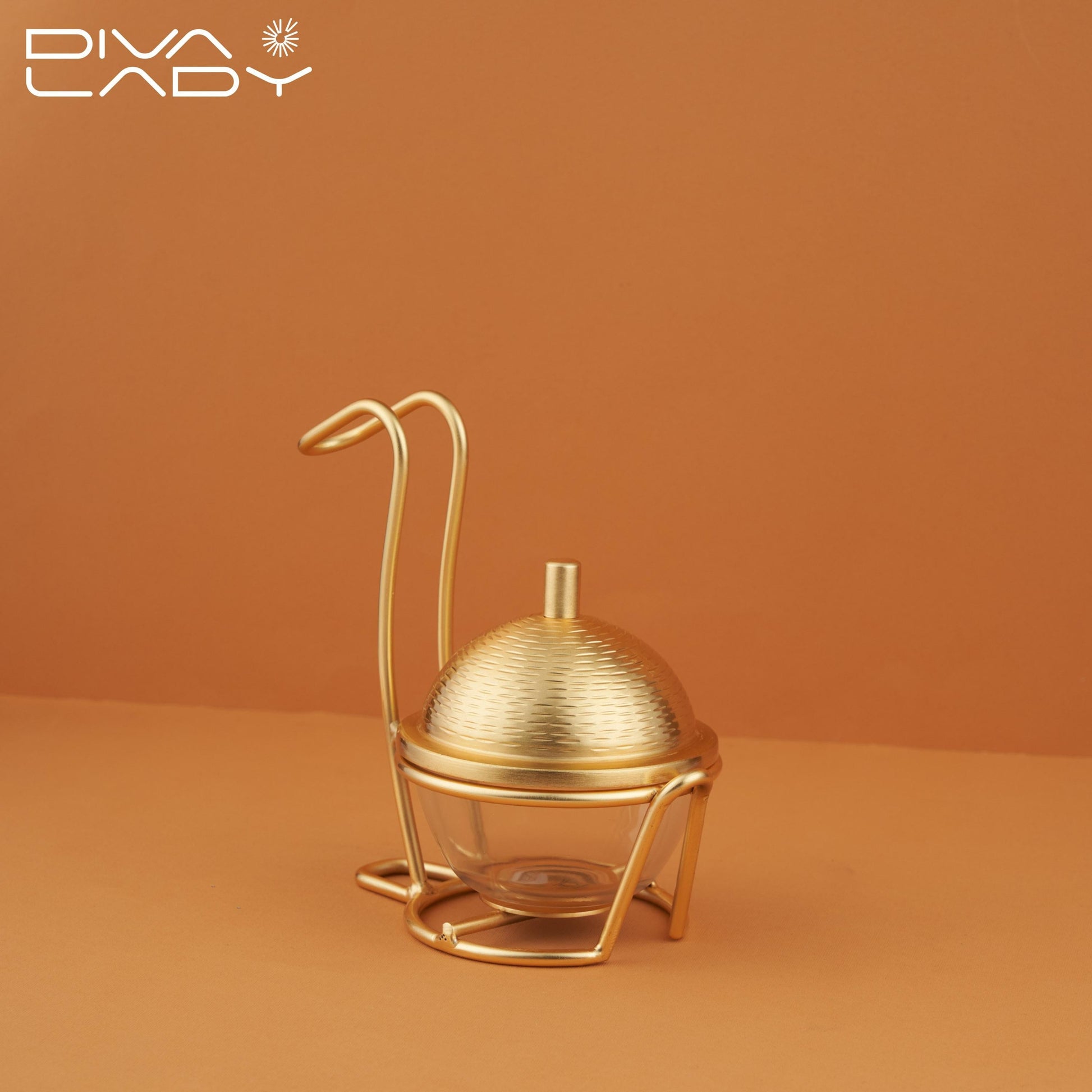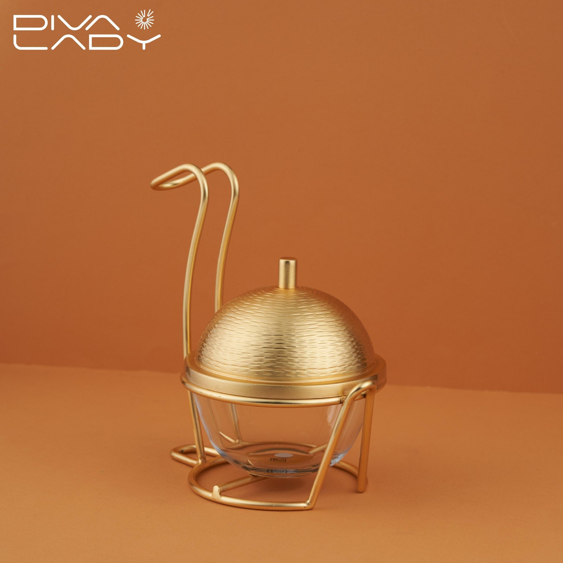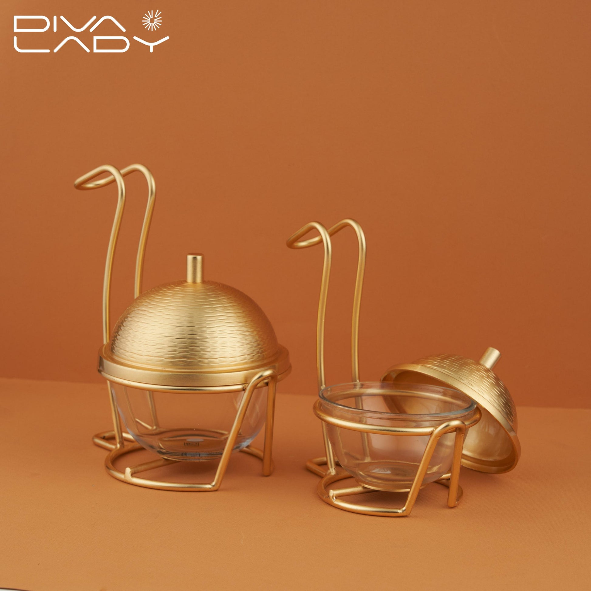 قطعة ديكور أنيقة ومفيدة في نفس الوقت يتميز الوعاء بتصميم مبتكر على شكل إناء تقليدي للتمر يتكون من قاعدة معدنية أنيقة ووعاء زجاجي شفاف و الغطاء المعدني له شكل مميز