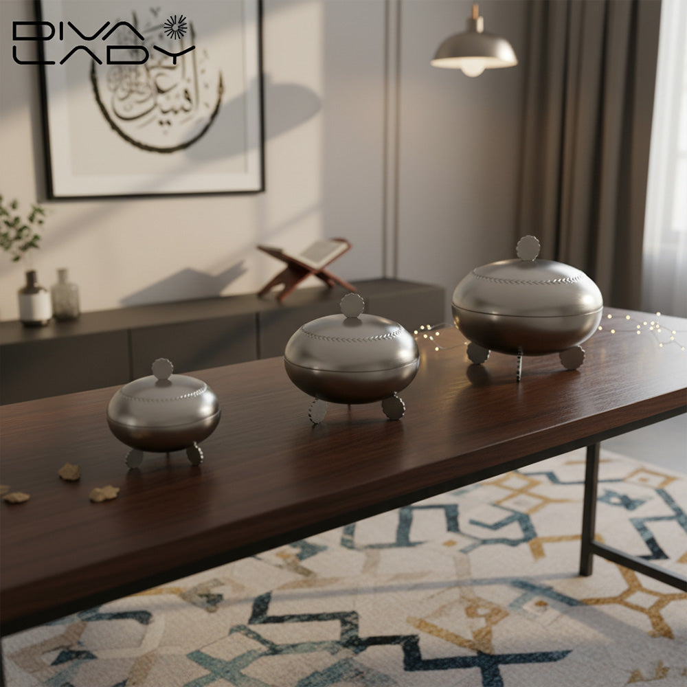تمرية مصنوعة من الاستيل تضيف لمسة فاخرة إلى مائدتك يأتي هذا الصحن بتصميم متميز وجودة عالية. استمتع بتقديم التمور بأناقة خاصة خلال الشهر الكريم. تعد هذة التمرية اختيار مثالي لإضافة لمسة ساحرة الى مائدة طعامك