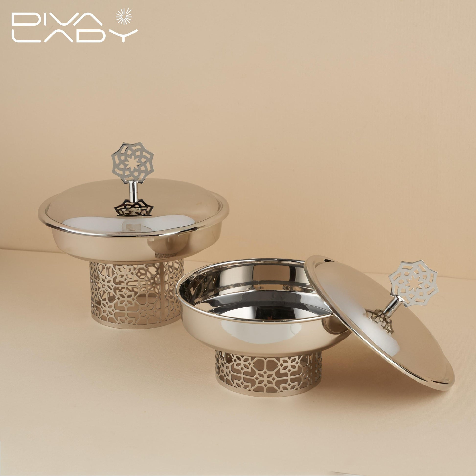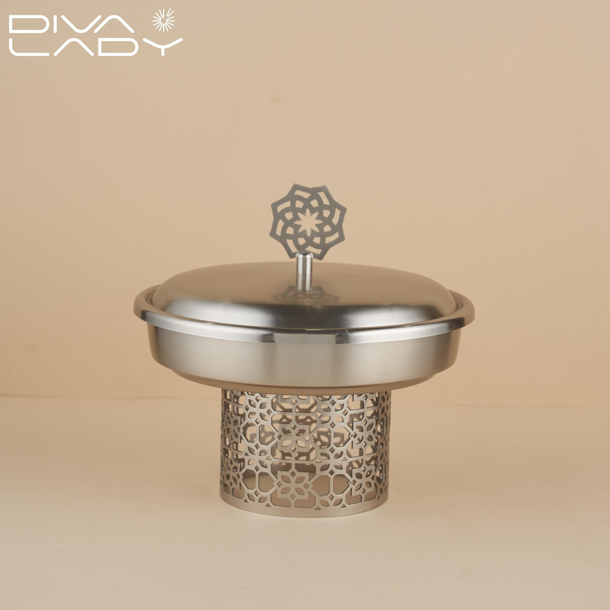 هو قطعة أنيقة وعصرية تستخدم لتقديم التمر للضيوف يتميز بتصميمه الفريد والمزخرف بنقوش هندسية مما يضفي لمسة من الرقي على مائدتك